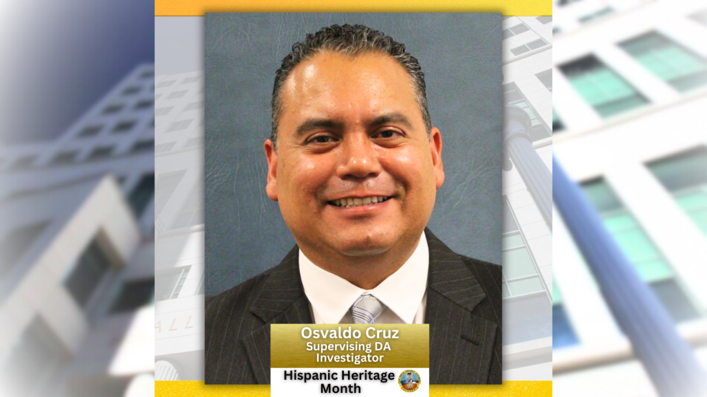In honor of Hispanic Heritage Month, which runs from September 15 through October 15, we are highlighting stories from DA employees and what inspired them to pursue a career in public service. Meet Supervising District Attorney Investigator Osvaldo Cruz.