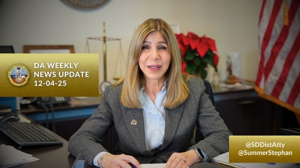 In this week’s DA News, District Attorney Summer Stephan shares essential tips to protect your packages, safeguard your home, and keep your deliveries out of the wrong hands. Learn how simple steps can help prevent theft and keep your holidays stress-free.