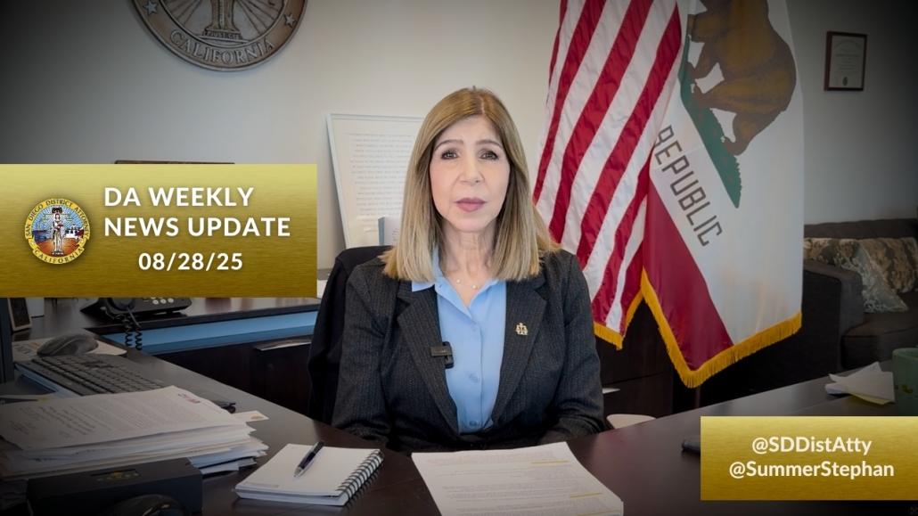 In this week’s DA News Update: As students return to school this month, District Attorney Summer Stephan emphasizes the importance of school safety and the role each of us plays in protecting children. In light of the recent tragic school shooting in Minneapolis, this message is more urgent than ever: if you see something, say something. Reporting suspected abuse or suspicious behavior can save lives and keep our schools safe.