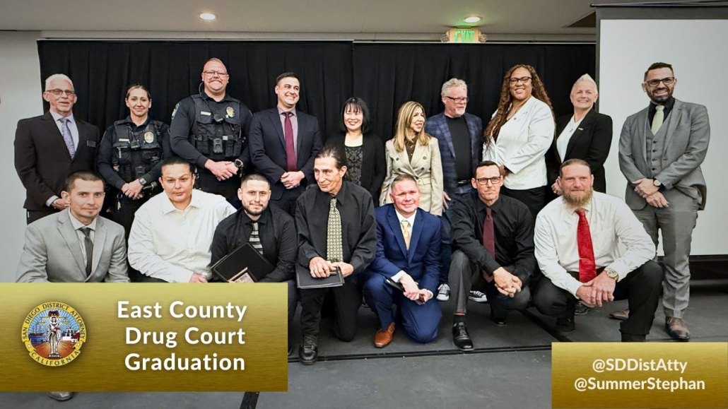 At the East County Drug Court Graduation, San Diego County District Attorney Summer Stephan explained how Drug Court provides accountability, treatment, and hope for individuals struggling with substance use disorders—and celebrated a major milestone through the SCOPE program.